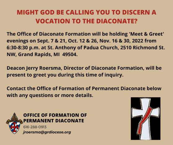 The Diocese of Grand Rapids has a vibrant and growing deacon program, if you feel you are being called to this ministry...