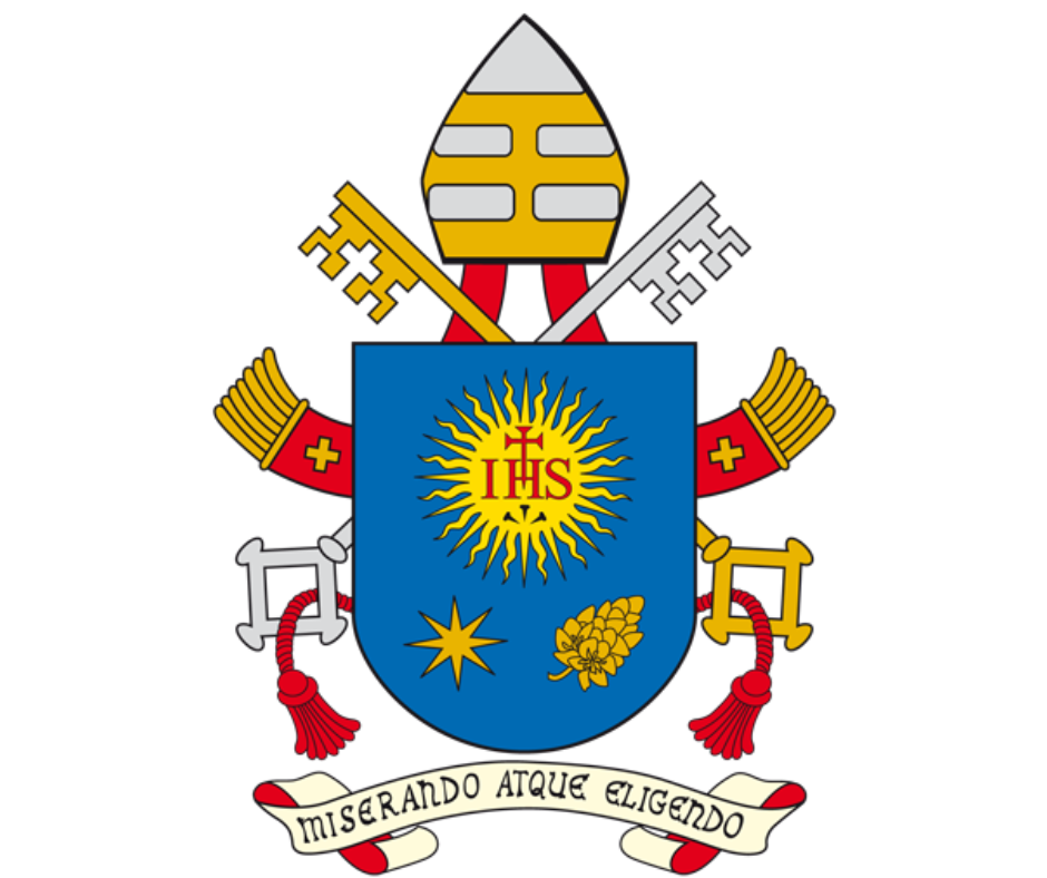 Pope Francis’ motto on his coat of arms, “miserando atque eligendo” is taken from a homily by Saint Bede, an English eighth-century Christian writer and doctor of the Church of the Gospel account of the call of Saint Matthew. It roughly translates to “having mercy, he called him.” Read more on the Vatican's website.
